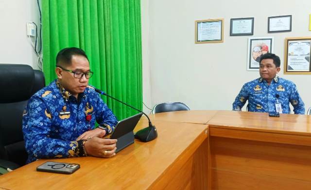 PREDIKSI CUACA - Kepala DLH Katingan, Yobie Sandra, S.STP, MA didampingi Kepala Bidang Pengendalian Pencemaran dan Kerusakan Lingkungan, Noga Yetra, S.Si saat menjelaskan terkait kondisi cuaca dan potensi banjir, Rabu (17/09/2025). (FOTO: KC1)