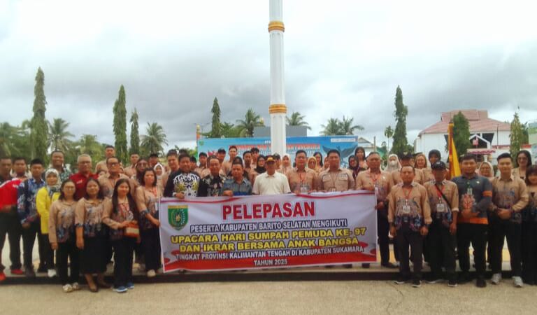 BUNTOK – Pemerintah Kabupaten Barito Selatan (Barsel) melepas kontingen yang akan mengikuti kegiatan Upacara Hari Sumpah Pemuda (HSP) ke-97 dan Ikrar Bersama Anak Bangsa (IBAB) Tingkat Provinsi Kalimantan Tengah di Kabupaten Sukamara.
