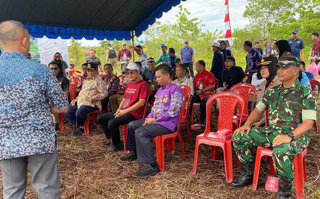 Bupati Katingan Saiful, S.Pd, M.Si bersama Wakil Bupati Firdaus ST, Kasdim 1019/Ktg Mayor Inf Slamet Dyanur, Wakapolres Katingan Kompol Uni Subiyanti dan pejabat daerah lainnya menyambut langsung kedatangan Dirjen Saintek di lokasi lahan  SMA Unggul Garuda Baru.