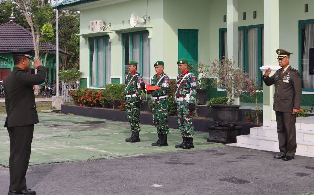 UPACARA - Dalam rangka memperingati Hari Pahlawan Tahun 2025, Kasdim 1019/Ktg Mayor Inf Slamet Dyanur memimpin langsung pelaksanaan upacara yang berlangsung di lapangan Makodim 1019/Ktg, Senin (10/11/2025). (FOTO: IST)