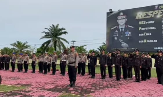 Bertindak sebagai Inspektur Upacara yakni Kapolres Barsel AKBP Jecson R. Hutapea, S.I.K, M.H., yang diwakili Wakapolres Kompol M. Tommy Palayukan, S.H., S.I.K.M.Si.dengan diikuti para pejabat utama (PJU), personel perwira, bintara maupun ASN di lingkungan Polres Barsel.
