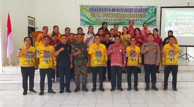 FOTO BERSAMA - Babinsa Koramil 01/Sepang Kodim 1018/Gunung Mas, Serma Helfrit menghadiri kegiatan Lokakarya Mini Lintas Sektoral Tahun 2025 di Puskesmas Kampuri, Kelurahan Kampuri, Kecamatan Mihing Raya, Kabupaten Gunung Mas, Kamis (04/12/2025). (FOTO: IST)