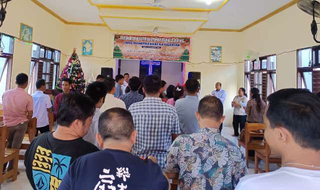 RAYAKAN NATAL - Keluarga besar Lapas Narkotika Kelas IIA Kasongan bekerja sama dengan GKE Kasongan menggelar perayaan Natal Tahun 2025, pada Senin (15/12/2025). (FOTO: IST)