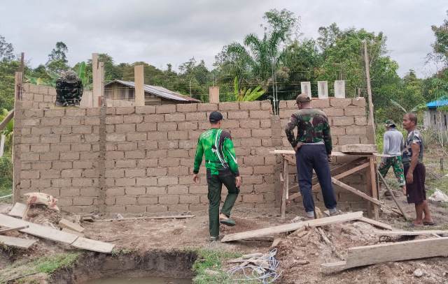Personel Satgas TMMD bersama warga setempat tampak kompak bergotong royong mempercepat proses pengerjaan pembangunan MCK tersebut. Mulai dari pemasangan dinding, pengecoran lantai hingga penyelesaian dilakukan secara bertahap agar MCK segera dapat dimanfaatkan oleh masyarakat.