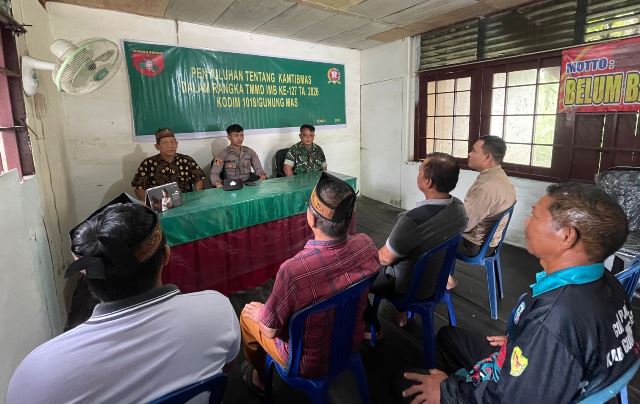 KUALA KURUN – Penyuluhan Kamtibmas digelar sebagai bagian dari Program non fisik. Satgas TMMD Imbangan ke-127 Kodim 1018/Gunung Mas menggandeng personel Polsek Tewah untuk memberikan penyuluhan Kamtibmas kepada warga masyarakat bertempat di Kelurahan Tewah, Kecamatan Tewah, Kabupaten Gunung Mas, Selasa(24/02/2026).