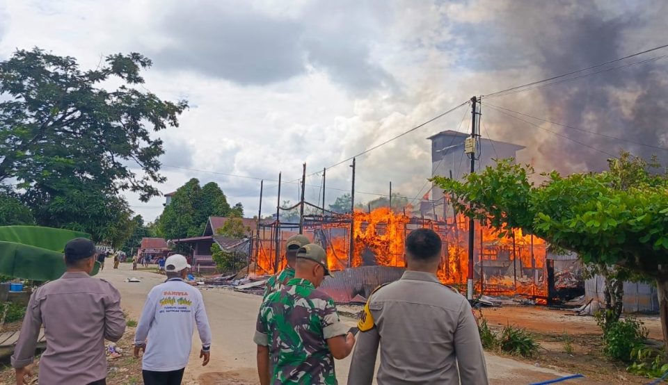 Kebakaran menghanguskan dua buah bangunan rumah dan dua toko di Desa Samba Katung RT. 09/RW. 003, Kecamatan Katingan Tengah, Kabupaten katingan, pada Senin (13/04/2026). (FOTO: IST)
