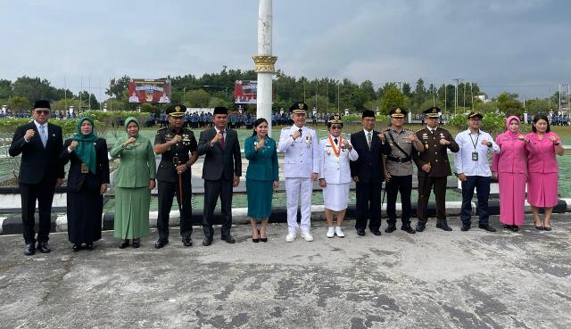 KUALA KURUN – Dandim 1018/Gunug Mas Letkol Inf Akhmad Rahmatullah bersama jajaran Forkopimda Kabupaten Gunung Mas mengikuti Upacara Peringatan Hari Jadi Otonomi Daerah (Otda) ke-30 Tahun 2026, bertempat di halaman Kantor Bupati Gunung Mas, Senin (27/04/2026).